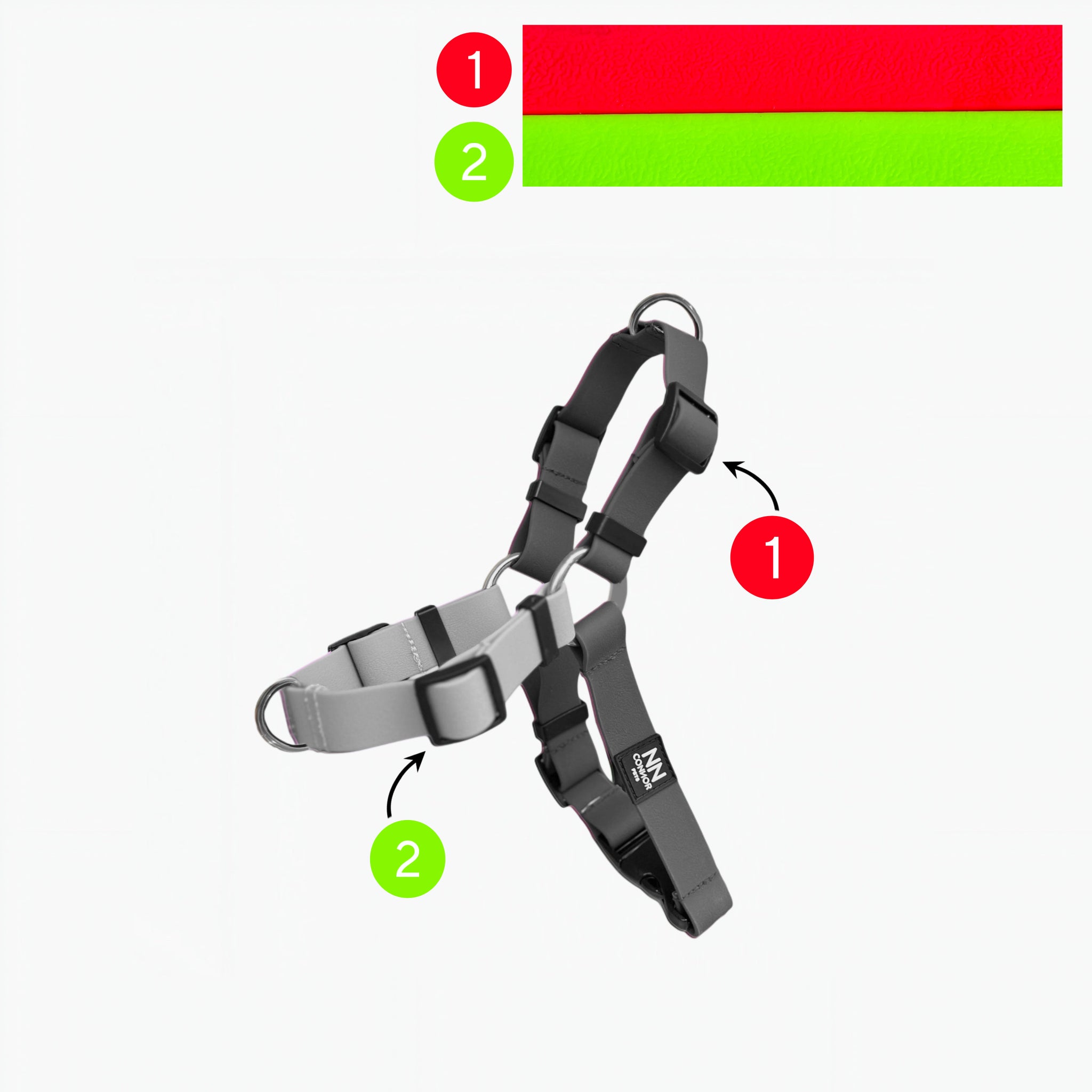 *Reata recubierta en PVC de 2.5cm, y 2cm para talla S y XS